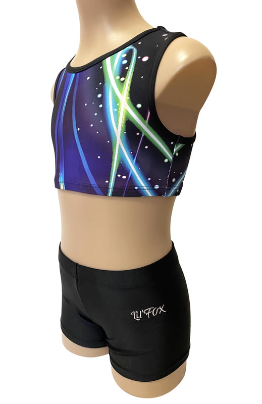 Electric Blue Galaxy top (fully lined) with Black Soft Velvet shorts